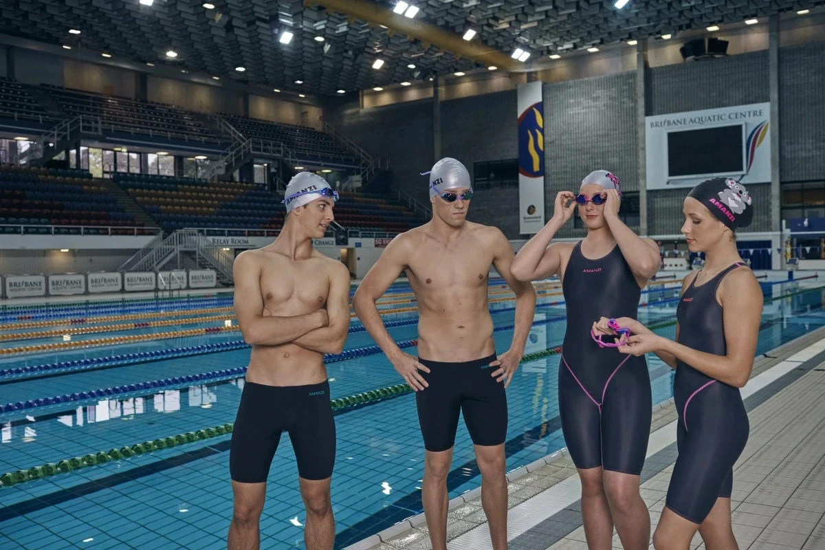 The Amanzi Flamingle Swim Cap features a silver background with 3 proud to be pink flamingos and a pink Amanzi Logo.