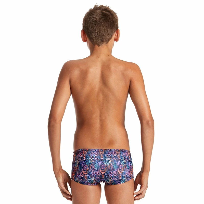 Love grunge but like a splash of colour too? You are going to fall head over swim fins for the AMANZI Iron Duke Plain Front Trunks! This bold iron and resin style print features jet black geometrics overlaid on vibrant shades of ruby, tangerine, shamrock, violet, and emerald.
