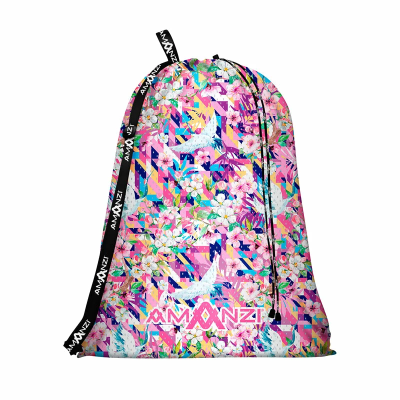 AMANZI Mesh Bags are ideal for storing and carrying wet swim gear. They are designed to fit all of your swim equipment including kickboard, fins, hand paddles, pull buoy, centre snorkel, cap, goggles and drink bottle. Wear them over one shoulder or across the body by adjusting the sliding shoulder strap. Drawstring cord has a toggle clip for an easy open & close.