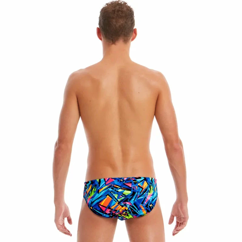 Got speed in your blood? Satisfy your need for speed with the Velocity Briefs. Slashed in technicolour shards of blue, orange and green, take your swimmer style from 0 to 100 real quick. Trust us when we say that in the Velocity Briefs, there is no speed limit.