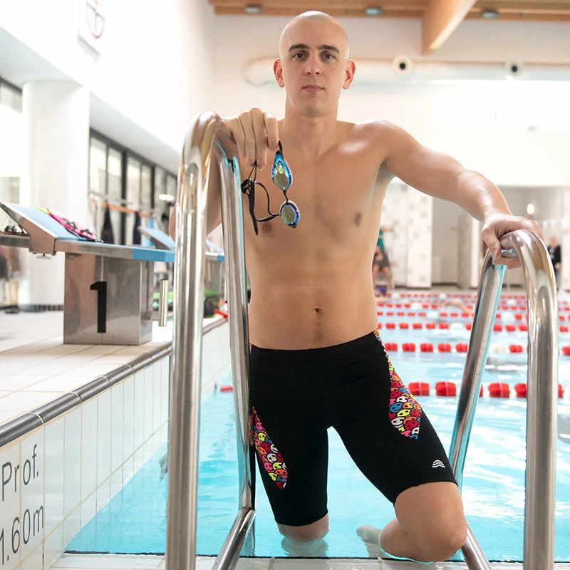 Men’s pool and swimming jammer by Aquarapid snug racing jammer with a classic cut, hip height 48 cm.