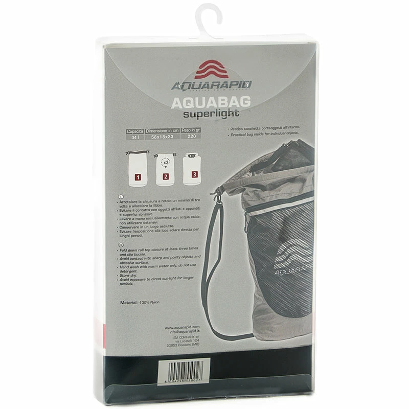 Aquarapid waterproof multipurpose bag for the sea and swimming pool, made with high resistance and super light 200D NYLON RIPSTOP fabric, with double polyurethane coating that makes it waterproof.