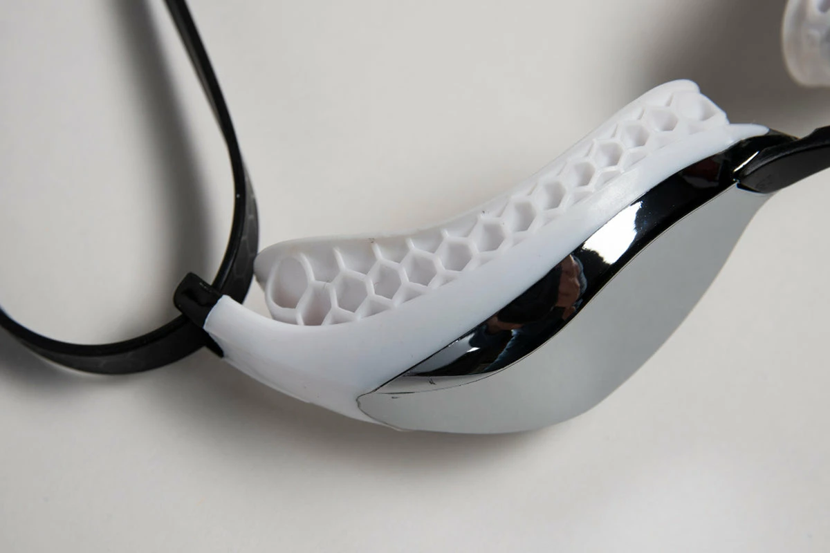 Every little thing counts when you’re racing. From the fit of your swimsuit to the surface of your cap. We developed our new Air Speed Mirror Goggles to feel like you’re not even wearing them so you can keep your mind on the race. These competitive goggles have special seals engineered with a honeycomb structure for enhanced adhesion to your face’s shape. The honeycomb cells are small by design for a secure fit and zero interference with your performance. Plus they reduce pressure and potential pain on sensitive areas. Created with mirrored wide lenses for expanded lateral vision and reduced glare, up your game with this sleek, hydrodynamic design.
