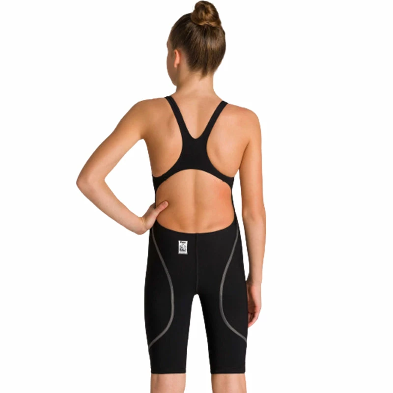 Our girls’ Powerskin ST 2.0 open-back one-piece is a technical swimsuit designed for both racing and training. With a new knit fabric combination and extra durable lining, ST 2.0’s hydrodynamic surface and strategic compression boost speed in the water and muscle support where it’s needed. This racing style has an innovative seam pattern that keeps the body lifted plus all seams are flatlock for a snug and comfortable fit. As your young swimmer races, her upper-body will feel free and supported with a new reinforced centre strap. Our FINA-approved competition swimsuit is printed with our logo and has athletic styling.