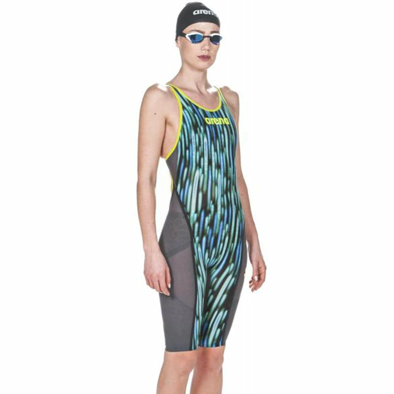 The dark grey Arena Carbon Ultra open back suit is at the top of the Arena race range. It incorporates the latest technology to aid body position and intelligent muscle compression.