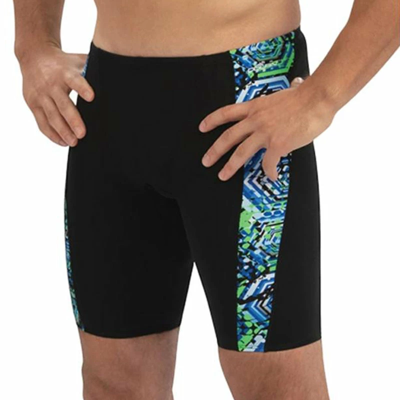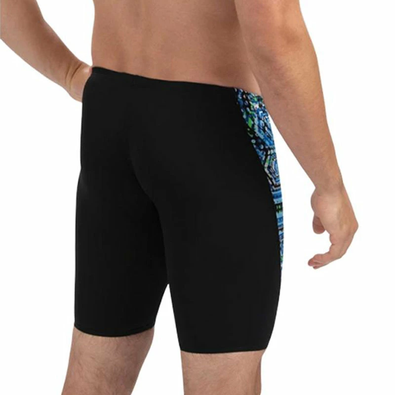 Swim in style in our athlete-approved Spliced Jammer with trendsetting blue/green Hive print along sides. Our ultra-durable RELIANCE 100% Polyester fabrication won’t let you down!