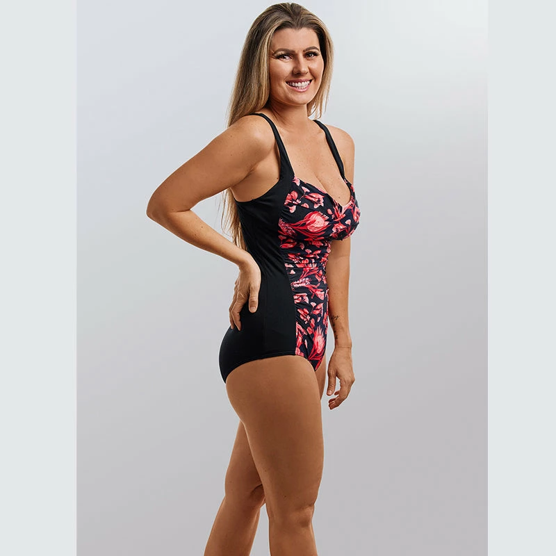 Fashion and function combine in this gathered style with flattering bust support and slimming panellinig to give you a streamlined look.