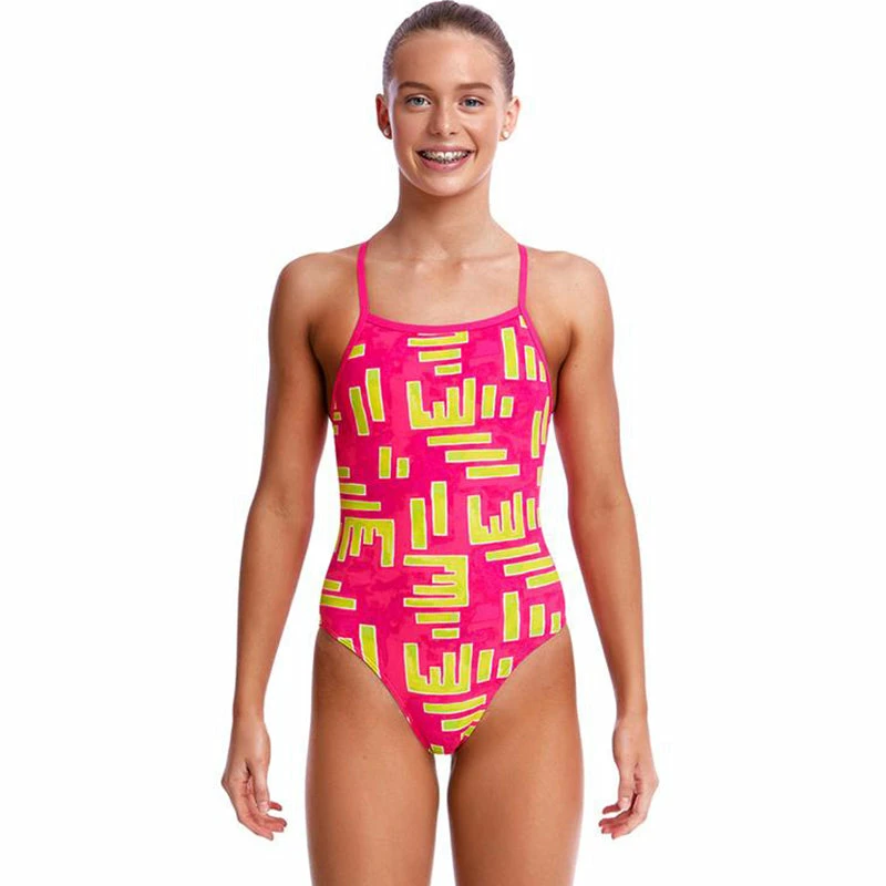The one piece style that criss crosses down your back offering you the flexibility to tie it just the way you like. With a moderately high cut leg it’s the perfect style to strap in for a hard session in the pool or relax when you’re poolside.