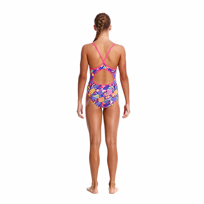 Our classic training style with signature diamond back strap finish and modest rear coverage is perfect for lap sessions. Features a circular cut-out back. With front lining and Funkita embroidery, this easy style says it all.