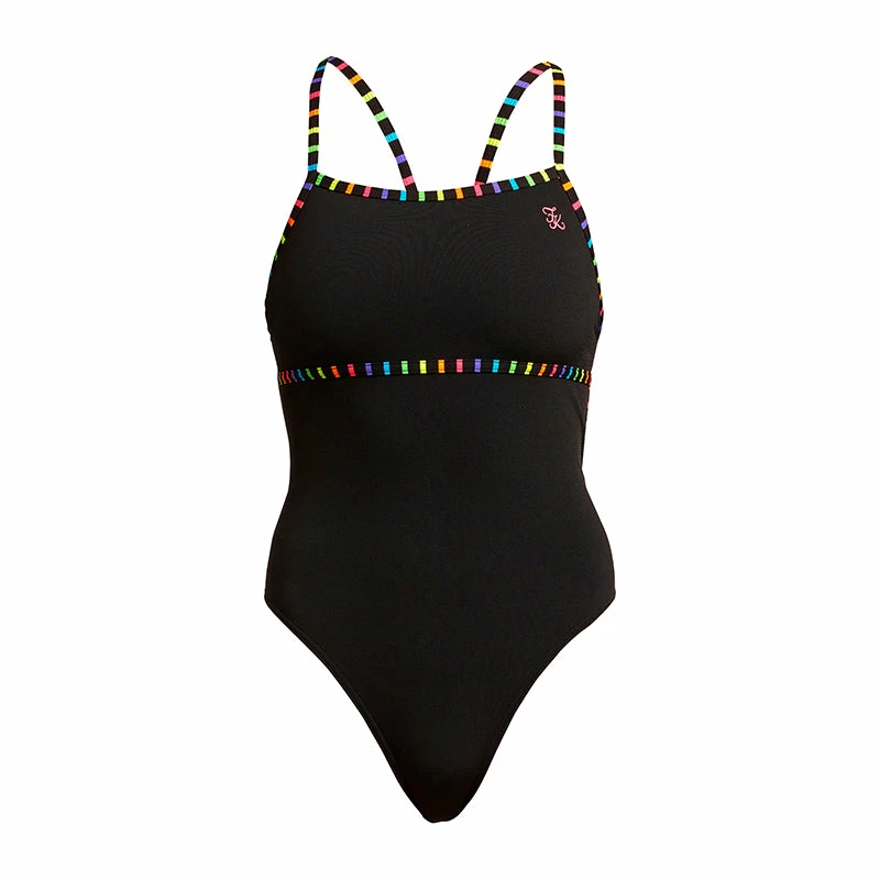 I come with full front lining and all the care and love in production that makes me proud to be Funkita. Made from our exclusive C-Infinity fabric, a 100% Italian polyester that is a colourful breakthrough in chlorine resistant fabric technology!ÂÂ