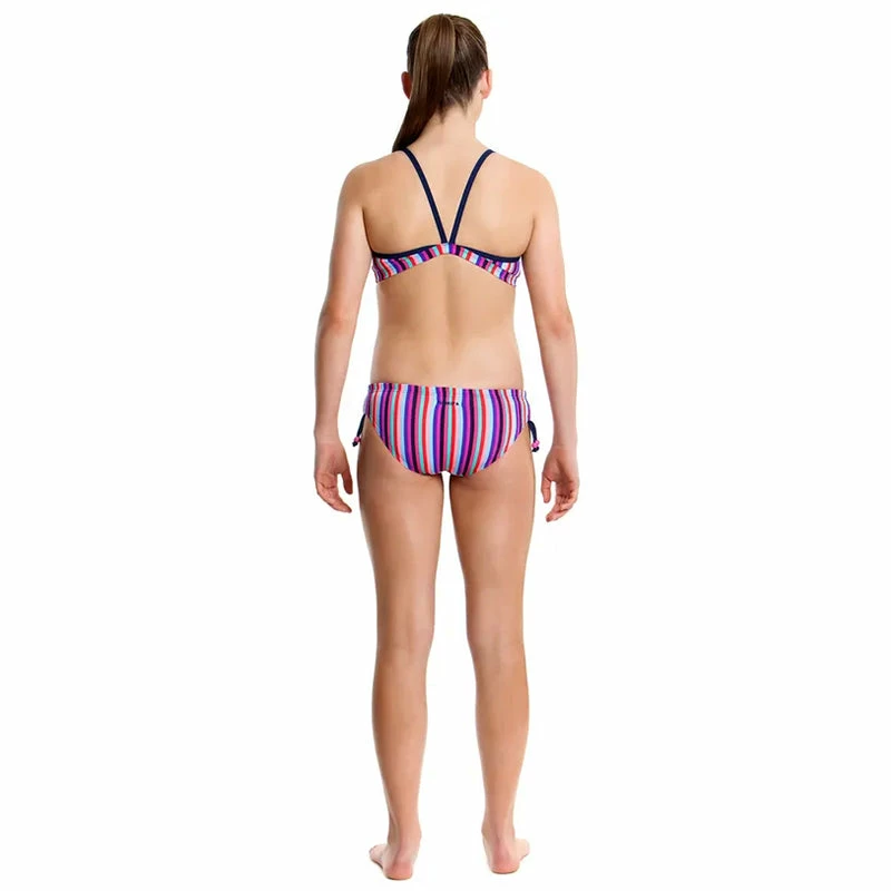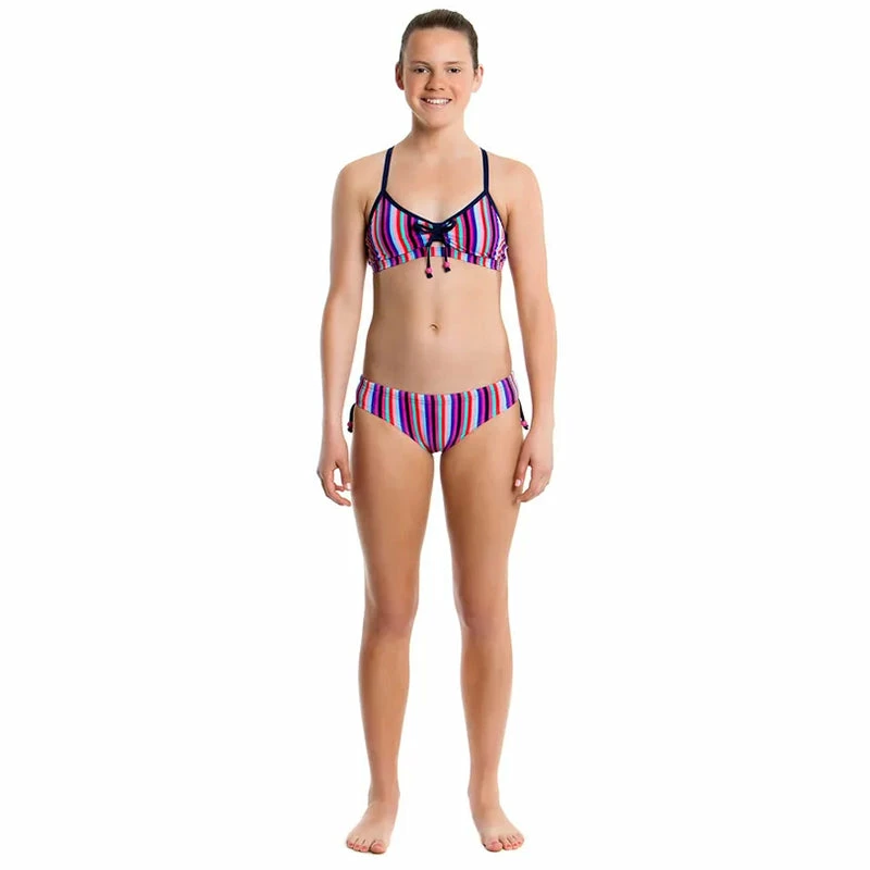 A firm fitting triangular top with gather detail and beaded ties and a hipster brief with side gathering for a fresh beach bikini look. Front lined and with a drawcord brief, it is perfect for catching waves and jumping in the pool.