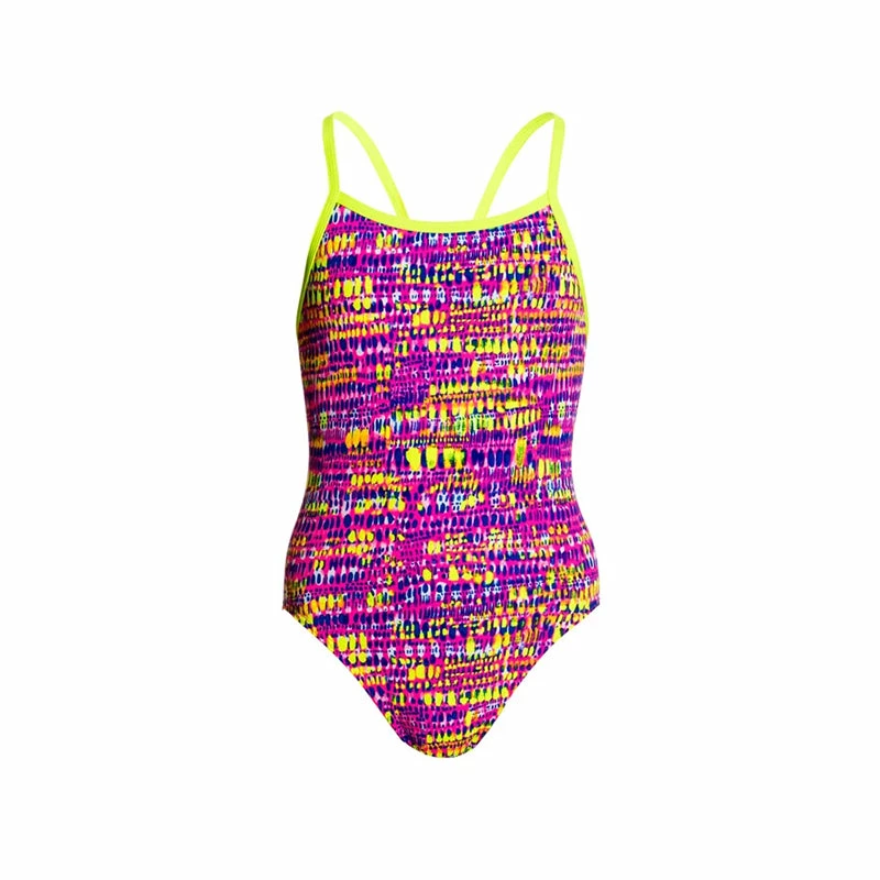 Freedom of movement and a narrower strap finish across the back sets this style apart from the rest. Features a scooped cut-out shape, logo embroidery and lining. Available in girls sizes 8 to 14.