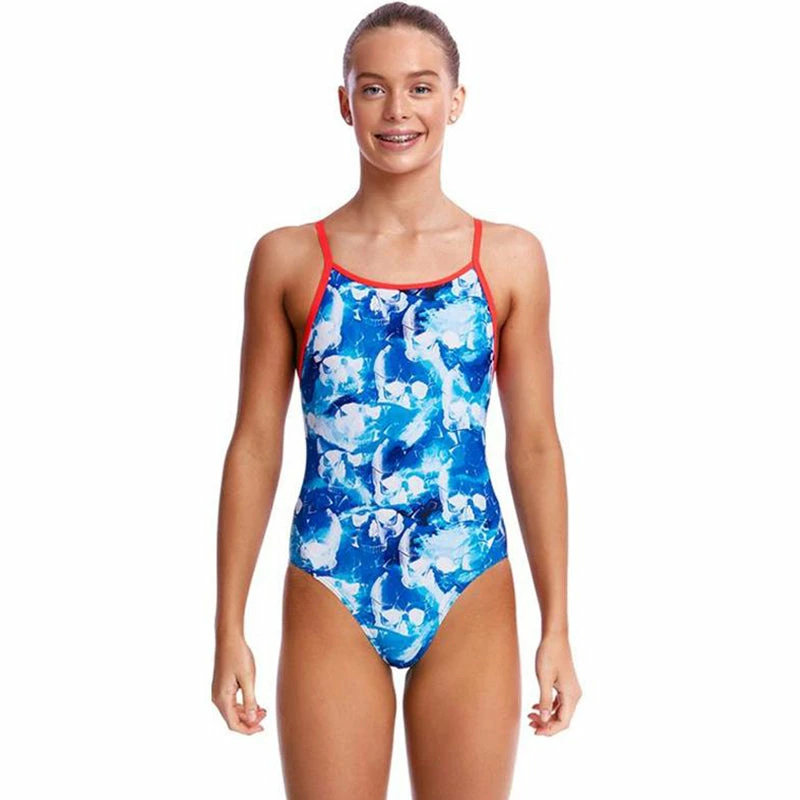 Our classic training style with signature diamond back strap finish and modest rear coverage is perfect for lap sessions. Features a circular cut-out back. With front lining and Funkita embroidery, this easy style says it all.