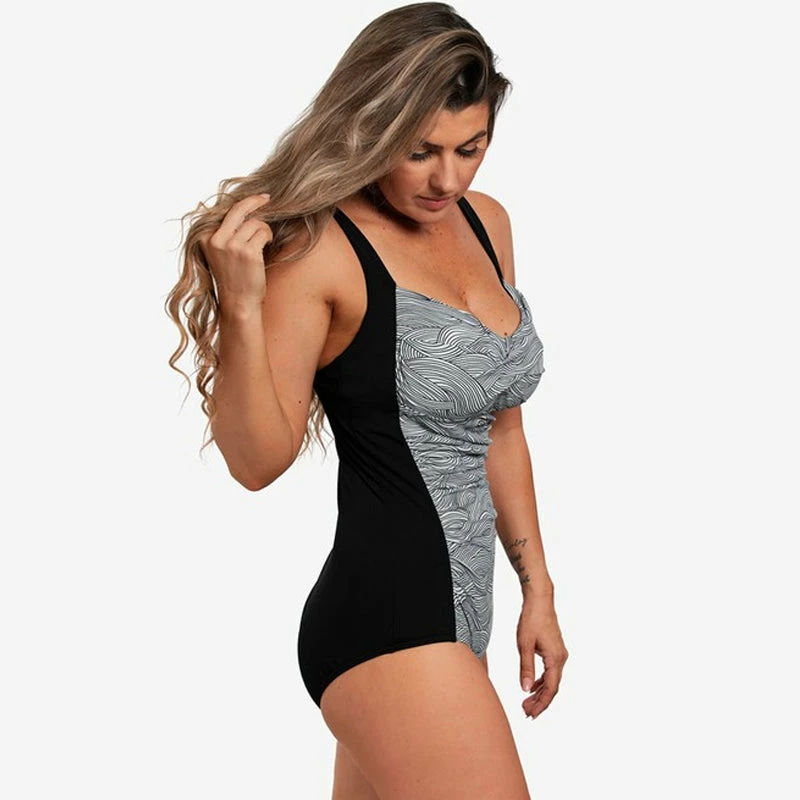 Fashion and function combine in this gathered style with flattering bust support and slimming panellinig to give you a streamlined look