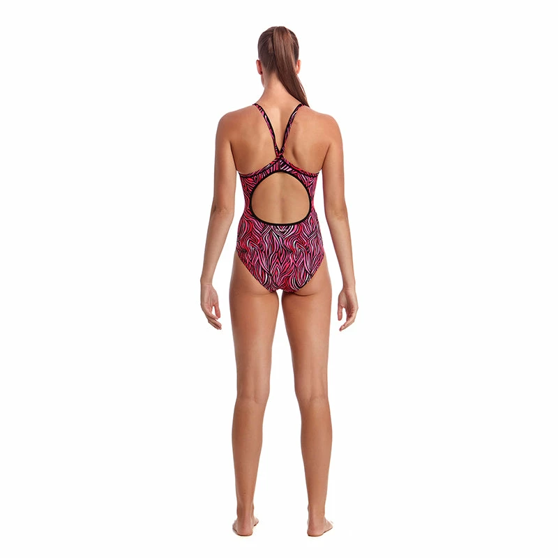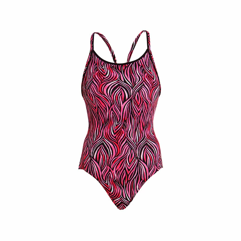 Our classic training style with signature diamond back strap finish and modest rear coverage is perfect for lap sessions. Features a circular cut-out back. With front lining and Funkita embroidery, this easy style says it all.