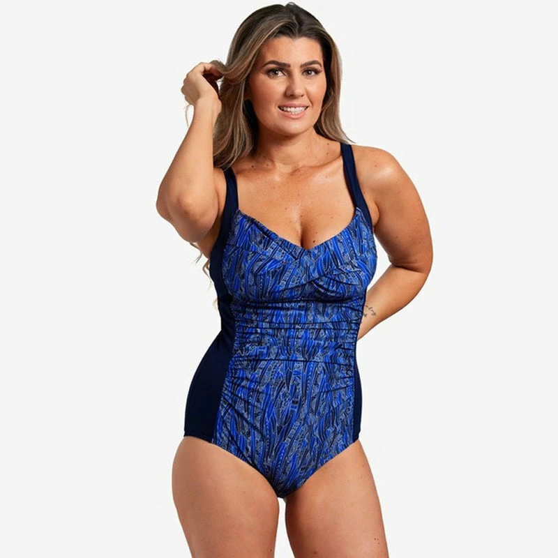 Fashion and function combine in this gathered style with flattering bust support and slimming panellinig to give you a streamlined look