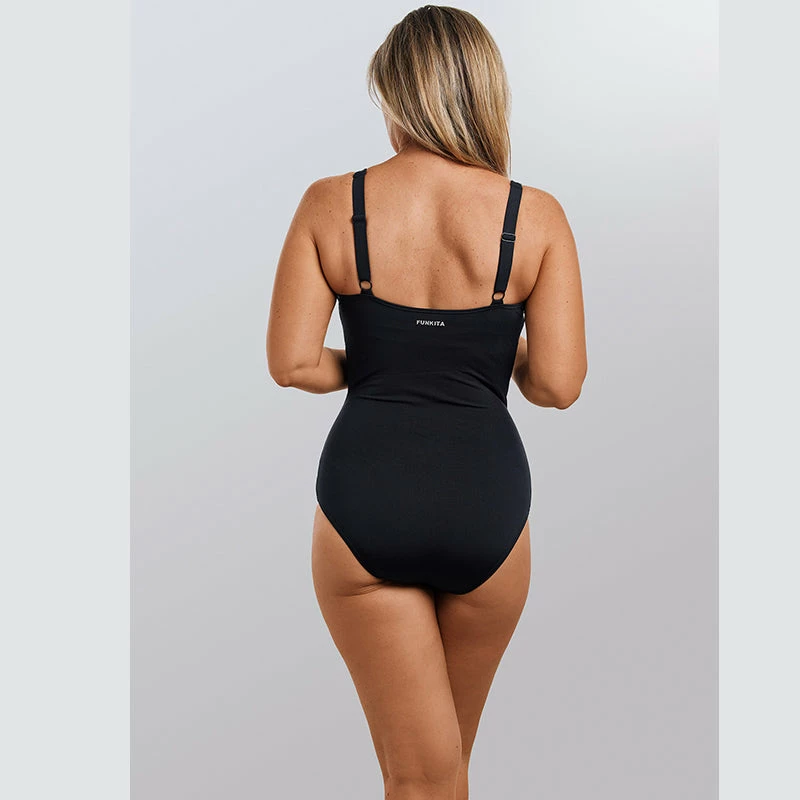 Fashion and function combine in this gathered style with flattering bust support and slimming panellinig to give you a streamlined look.