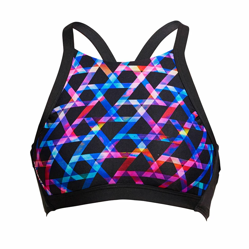 If you’re a D-E cup and love the extra coverage of a high neck bikini top with removable padding, then I’m your perfect swim top! C-Infinity is 100% chlorine resistant with brilliant colours and durability. Sold as separate.