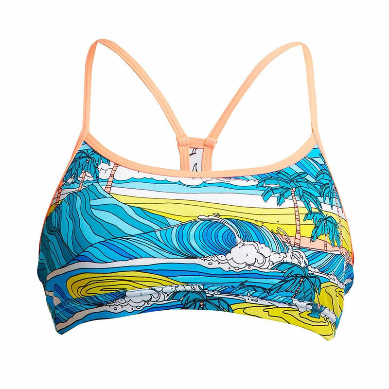 Keep it simple and swim in this racerback style crop that features single bind straps across the shoulders and removable padding for additional comfort and support. Sold as separates.