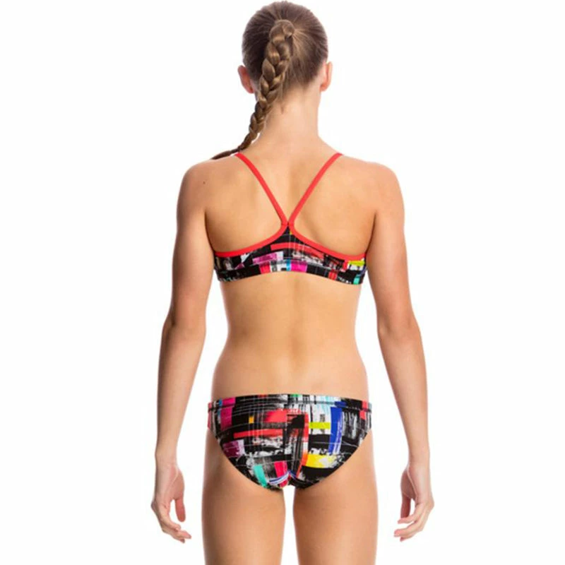 A firm fitting crop top and hipster brief suited to the sporty girl. It’s a secure fit with underbust and waist elastic and drawcord in the brief. Features a single shoulder bind strap finish. Available in sizes 8 – 14.