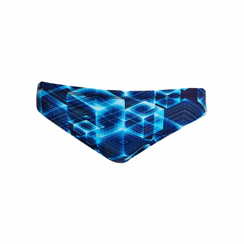 Classic cut brief with 5cm sides and flat elastic waistband and flatlock stitch finish. Drawcord, single front lining and subtle logo embroidery on bum.