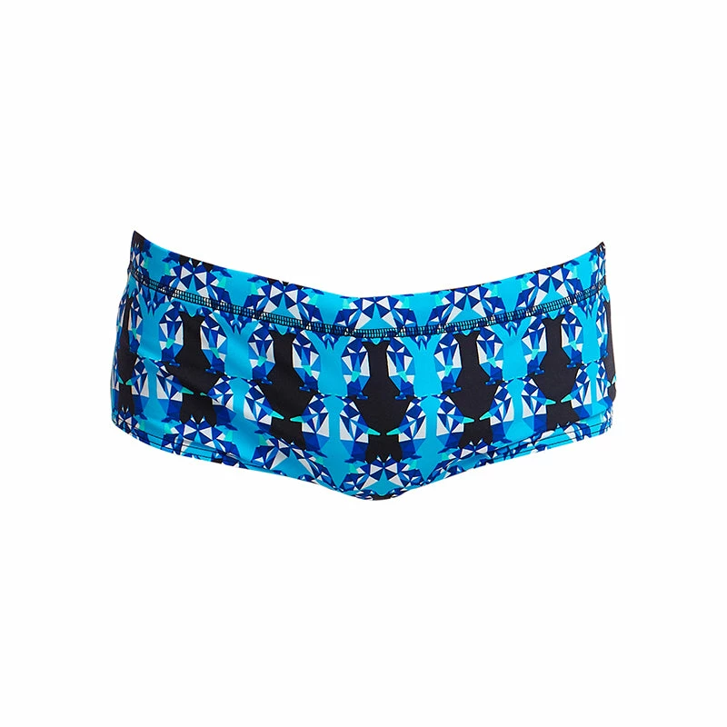 13cm wide side trunk (14cm for larger sizes). Front lining and drawcord with Funky Trunks logo come as standard. Wide elastic at waist offers exceptional comfort all round.