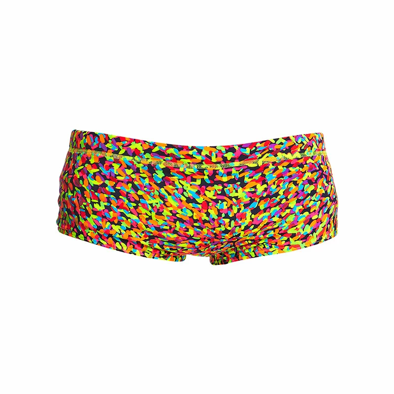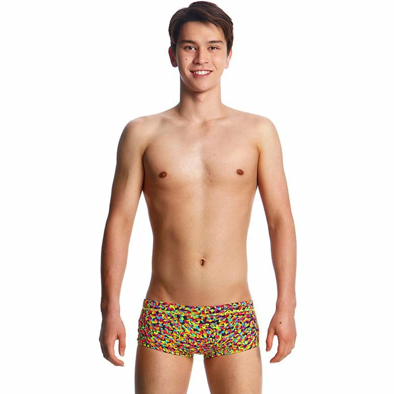 13cm wide side trunk (14cm for larger sizes). Front lining and drawcord with Funky Trunks logo come standard. Wide elastic at waist offers exceptional comfort all round.