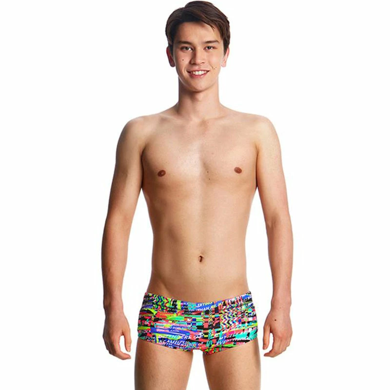 13cm wide side trunk (14cm for larger sizes). Front lining and drawcord with Funky Trunks logo come standard. Wide elastic at waist offers exceptional comfort all round. Available in sizes 8 – 14.