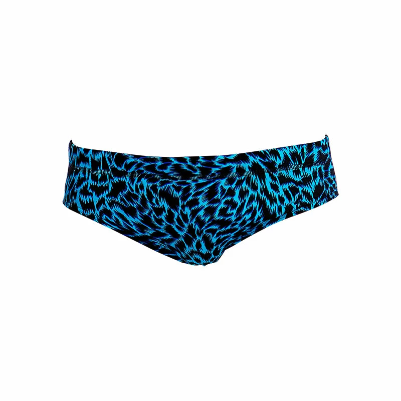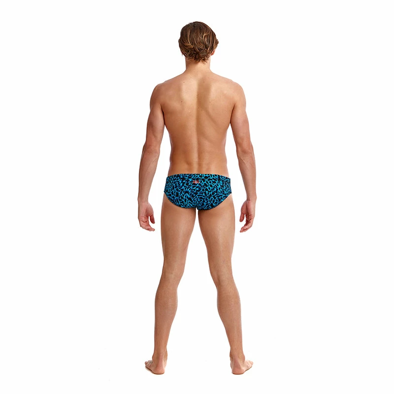 A classic cut brief with 8cm sides and flat elastic waistband and flatlock stitch finish. Drawcord, front lining and Funky Trunks embroidery come standard.