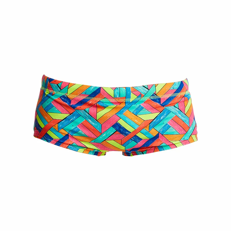 13cm wide side trunk (14cm for larger sizes). Front lining and drawcord with Funky Trunks logo come standard. Wide elastic at waist offers exceptional comfort all round.