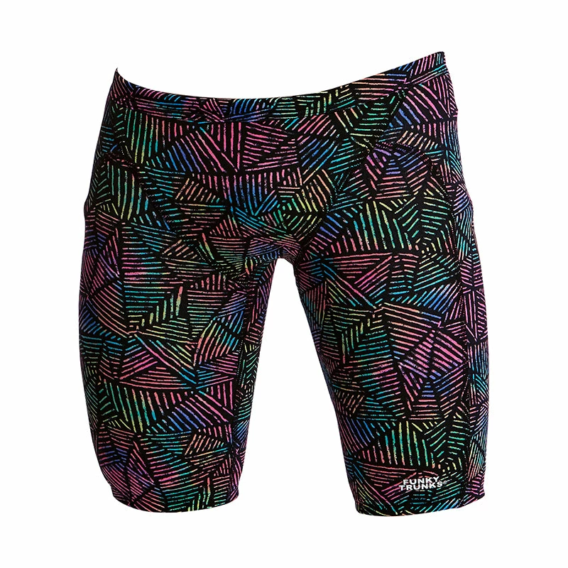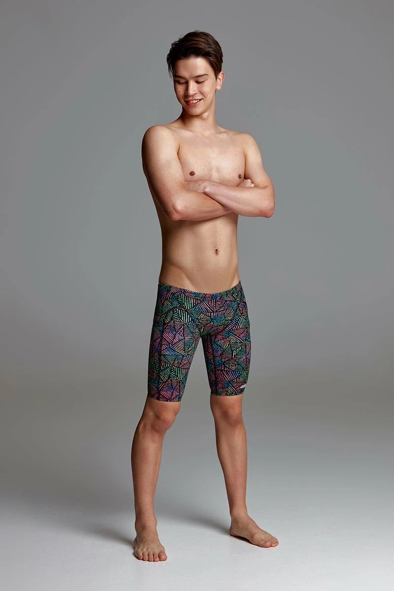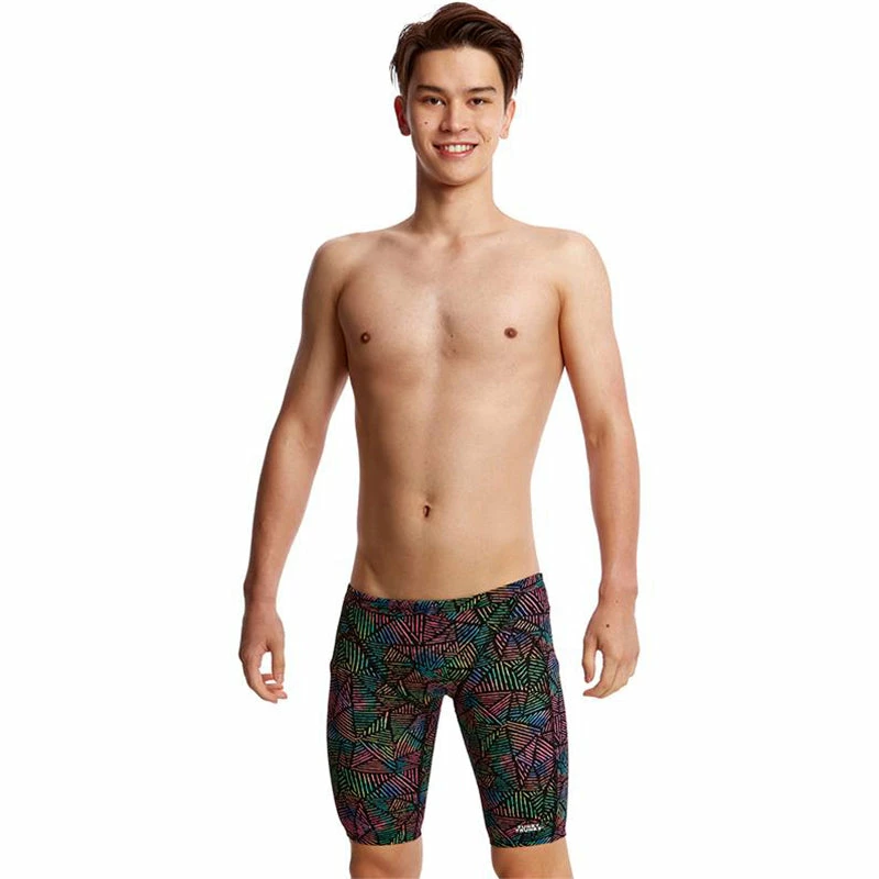 The Training Jammer is perfect for regular training with flatlock stitching, comfortable leg opening, drawcord and rubber print Funky Trunks logo. It’s a popular choice for swimmers and triathletes and offers an extra layer of warmth in open water when a wetsuit isn’t an option. Available in all over prints and for the more conservative, splice prints and plain black.Â