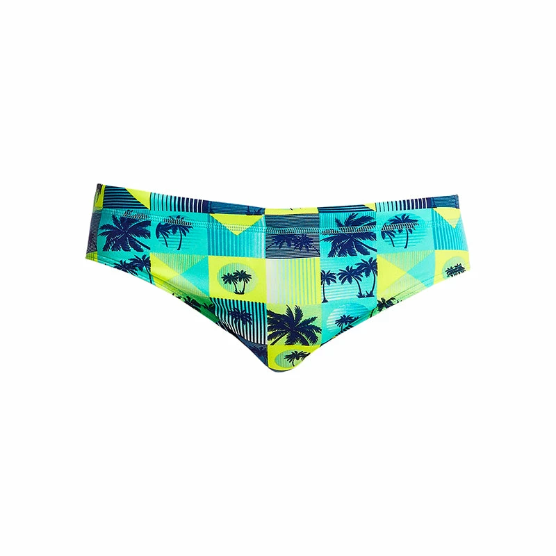 A classic cut brief with 8cm sides, flat elastic waistband and flatlock stitch finish. Drawcord, front lining and Funky Trunks embroidery come standard.
