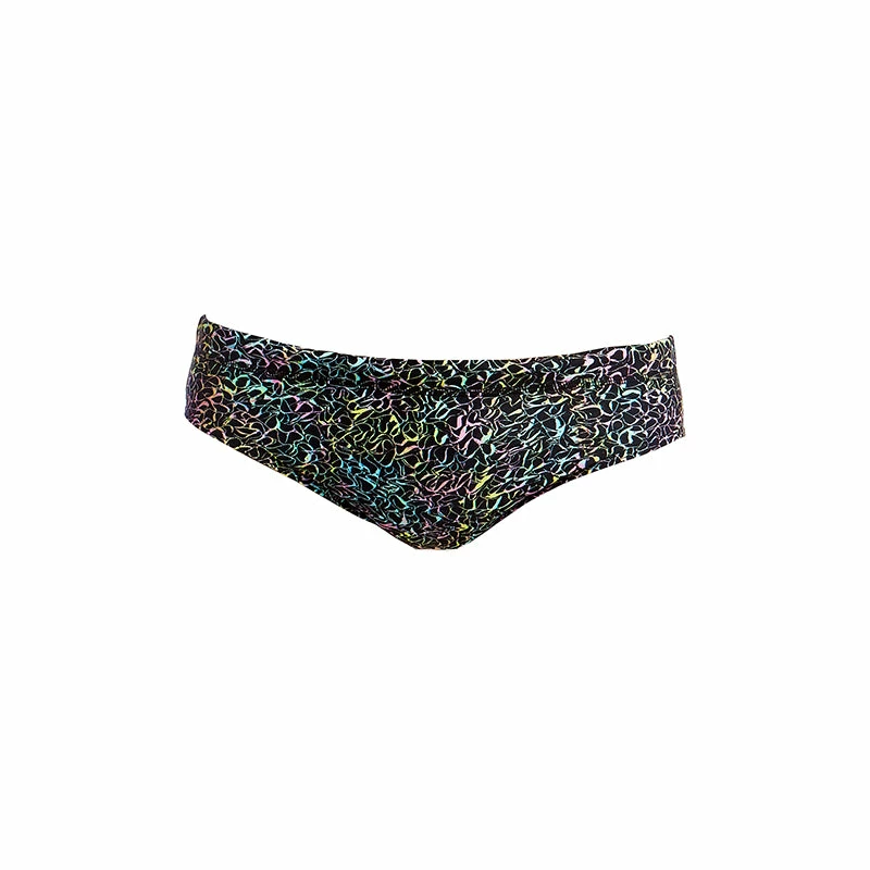 A classic cut brief with 8cm sides, flat elastic waistband and flatlock stitch finish. Drawcord, front lining and Funky Trunks embroidery come standard.