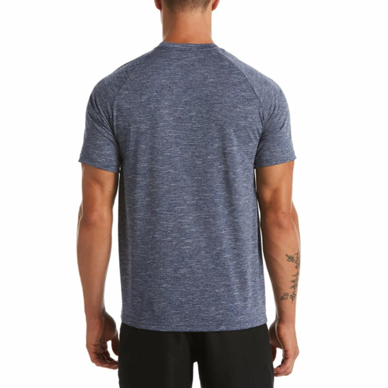 Nike Swim Men’s Heather Short Sleeve Hydroguard boasts Dri-FIT technology to help you stay comfortable both in the pool and the beach. The heathered fabric boasts plenty of stretch for a flexible fit and a wide range of motion. UPF 40+ protection helps to defend against UV rays from penetrating through the swim shirt. (NESSA589)