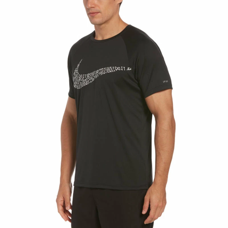 Add coverage and protection to your swim gear with the Men’s Nike Swim JDI Swoosh Short Sleeve Hydroguard. The rash guard shirt has Dri-FIT technology to help keep you comfortable and dry when you’re out of the water. UV protection helps to block the sun’s damaging rays from passing through the material, while taping along the interior of the neck helps to prevent chafing. A large swoosh logo across the chest gives the design a dynamic, athletic look. (NESSC660)