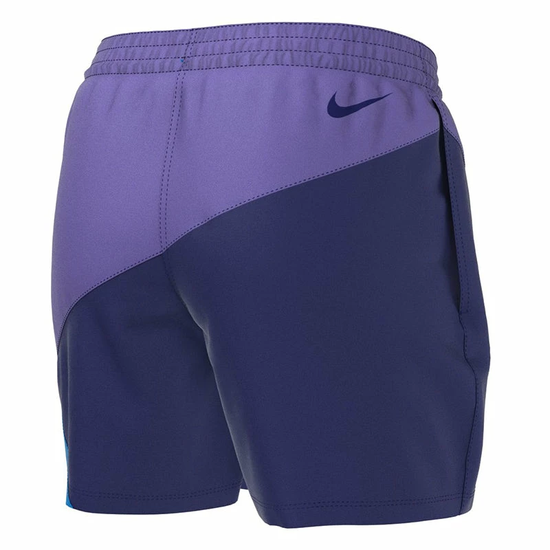 Update your swimwear collection with the Men’s Nike Swim Logo Jackknife 5″ Volley Short. These swim trunks feature contemporary color blocking on a lightweight polyester fabric. A stretch waistband with exterior drawcord ensures flexibility while the built-in mesh brief allows for a secure and supportive fit. On seam pockets with mesh pocket bags provide convenient water drainage and a media pocket offers additional hands-free storage while you swim. (NESSC470)