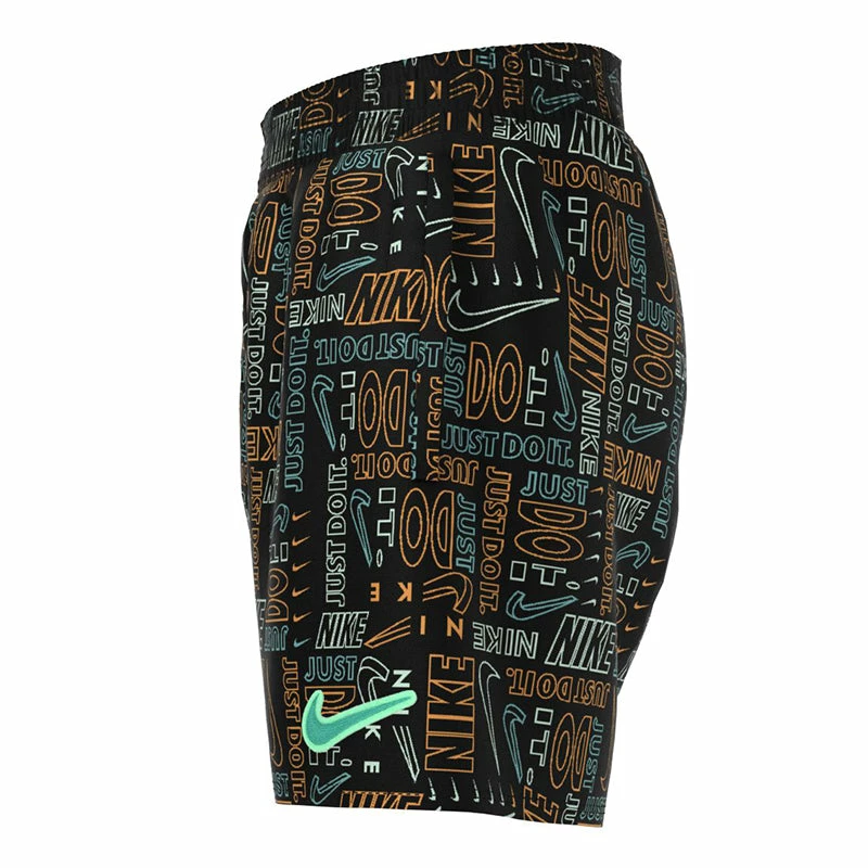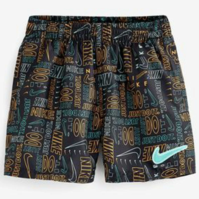 Cool and contemporary, the Boys’ Nike Swim Logo Mash-up Breaker 4″ Volley Short, is sure to make a splash. An eye-catching print helps these boys’ swim trunks to stand out while the lightweight polyester fabric ensures they feel as good as they look. They have a built-in mesh brief for a secure and supportive fit and a stretch waistband with internal drawcord for adjustable comfort. Side welt pockets with mesh bags for drainage allow for hands-free storage of small items. (NESSC792)