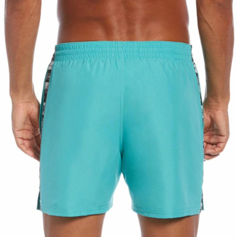 Make waves in the Men’s Nike Swim Logo Tape 5″ Volley Short. Branded tape down the sides adds eye-catching detail to these sporty solid swimming trunks. They’re made with a lightweight polyester fabric and feature a stretch waistband with exterior drawcord for flexible comfort. A built-in mesh brief ensures a secure and supportive fit. On seam pockets with mesh pocket bags provide convenient water drainage and a media pocket offers additional hands-free storage space. (NESSC473)