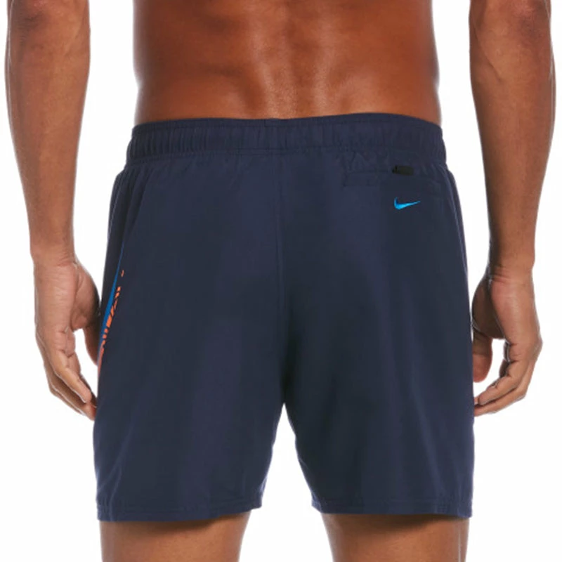 The Men’s Nike Swim Liquify Swoosh 5″ Volley Short provides a sporty cut in a comfortable design. A stretch waistband with exterior drawcord offers custom comfort, while a breathable, built-in mesh brief provides a secure and supportive fit. The short swim trunks feature a back hook-and-loop welt pocket with mesh pocket bag for water drainage and an inner mesh pocket for storing small items. (NESSC611)