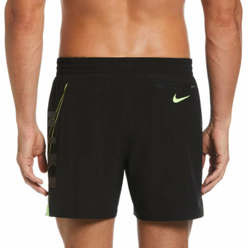 From pool workout to beach party chillout, these Nike 5″ men’s swim shorts do it all. The versatile men’s volley shorts are made from a durable plain weave fabric, with a stretch waistband featuring drawcord adjustment to keep them in place. A breathable mesh brief on the inside provides essential support both while you’re swimming and strolling along the beach. Leg vents provide added air and water flow to help keep you dry, while a zippered pocket provides secure storage for small essentials like your keys and cards. A Nike Reflect logo on the side of the short swim trunks adds an eye-catching finishing touch. (NESSC546)