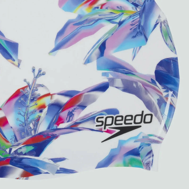 Bring a touch of the tropics to your swim wearing our Digital Printed Cap, featuring a floral graphic. Made from snag-free silicone, the easy-to-fit swim cap won’t pull your hair and stays comfortable during your workout, so you can focus on your swim. The durable, long-lasting silicone design makes it ideal for regular swim sessions and helps to protect your hair against chlorine. (813524H226)
