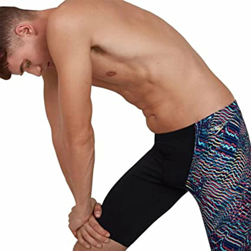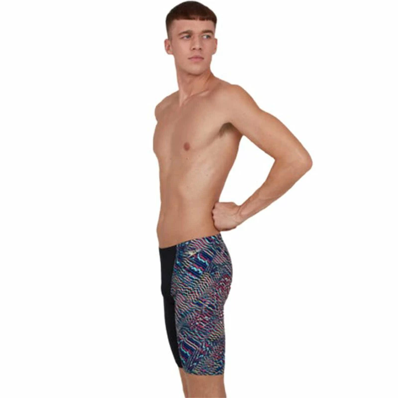 Inspired by the sensory perception of flowing water over the body, the right leg of this jammer has bright ripples of blended colour popping out from a sleek black background. Including a drawstring waist and V cut panel to enhance your comfort and security, this jammer is ideal for regular training sessions in the pool. Our 100% chlorine resistant Endurance+ fabric will withstand even the most intense training regime and you’ll feel more comfortable out of the water as well as in it thanks to its quick drying properties.