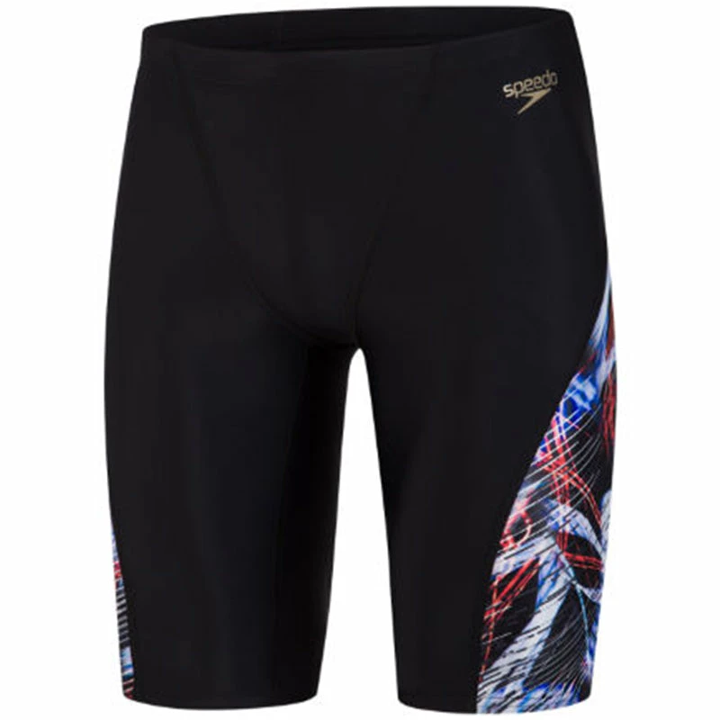 Inspired by the sensory perception of flowing water over the body, this jammer features panels of bright splashes of red and white on a sleek black background. This style includes a drawstring waist and V cut panel to enhance your comfort and security, and is ideal for regular training sessions in the pool. Using our PowerFlex Eco fabric, which is made from recycled yarns, is chlorine resistant and feels soft against the skin, it’s good for you and good for the environment.