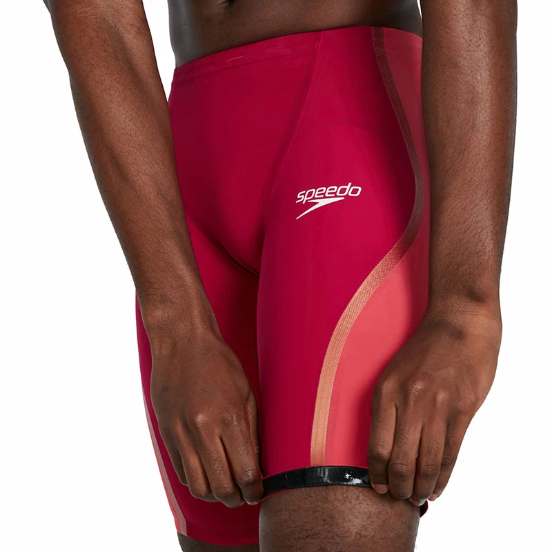The Fastskin LZR Pure Intent High Waisted Jammer in Dark Magenta & Phoenix Red features compressive dual layers and ergonomic seam construction designed to connect key muscle groups for greater power return. Textured fabric zones target drag reduction so you get the very best from your swim, and the triple fabric construction with bonded seams has been designed to enable greater movement. The high waist jammer style offers greater coverage which can improve performance. This product has been fully approved by FINA. (811977H088)