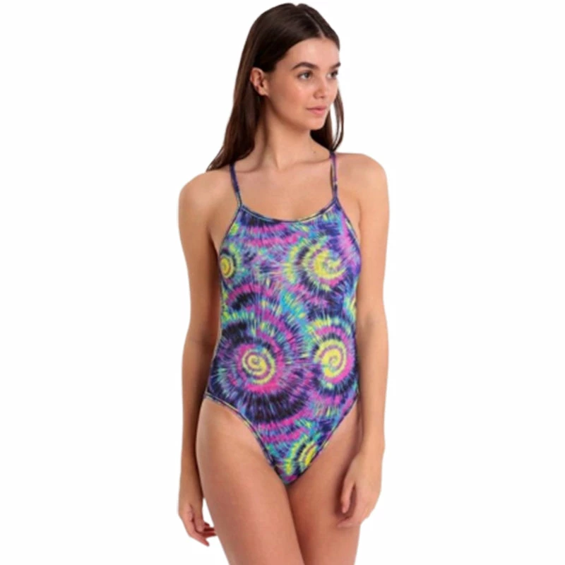 The Speedo Hippy Explosion swimsuit is a funky reversible competition swimsuit with high leg for superior freedom of movement. This new swimsuit joins Speedo’s competitive range for the ultimate in race performance.