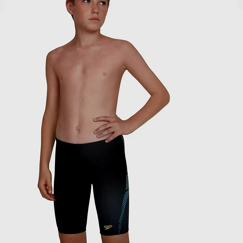 Young swimmers will stand out in the pool for all the right reasons in this classic black jammer with a contrasting vibrant hexagon print. Stylish and comfortable, this jammer includes a drawstring waist and an internal front liner for comfort and security making it the perfect for any swim from lessons to training sessions. Soft and stretchy, our Endurance10 fabric will ensure kids can swim in comfort, whilst Creora HighClo means their jammer will fit them like new for longer. (809531D836)