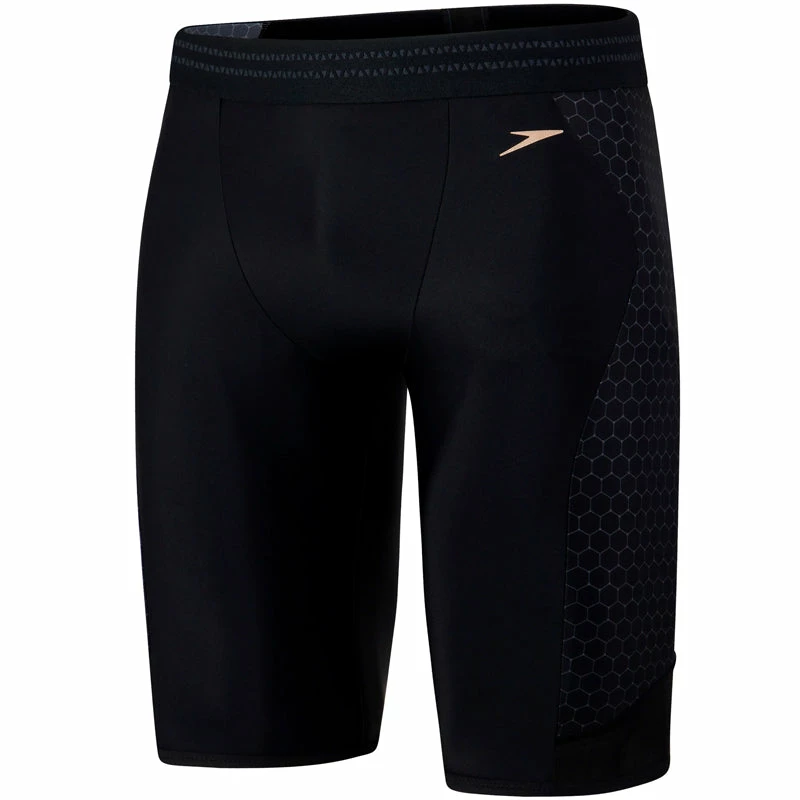Sleek and stylish jammer with a flash of gold and side panels featuring our modern hexagonal print in grey for a sporty look.