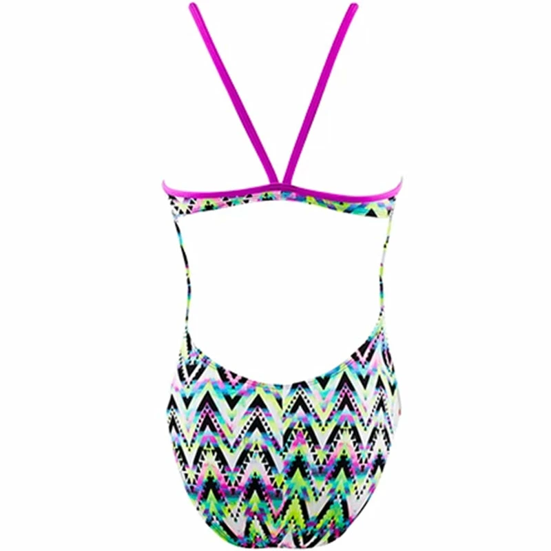 The Women’s Rave Funnies Wingback Swimsuit utilizes a sleek Poly/Spandex fabrication to provide performance in and out of the water.