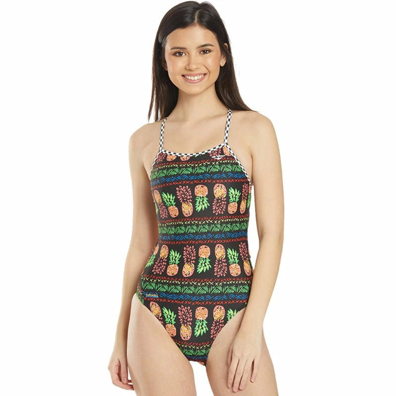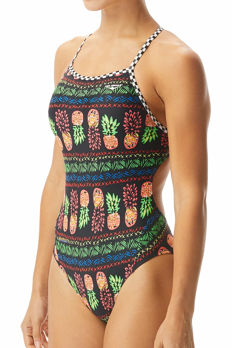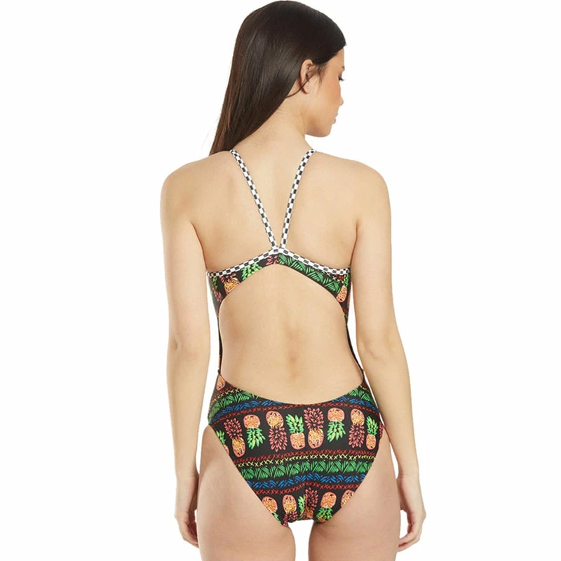The Women’s Tropic Party Non Foil Funnies Wingback Swimsuit utilizes a sleek Poly/Spandex fabrication to provide performance in and out of the water.